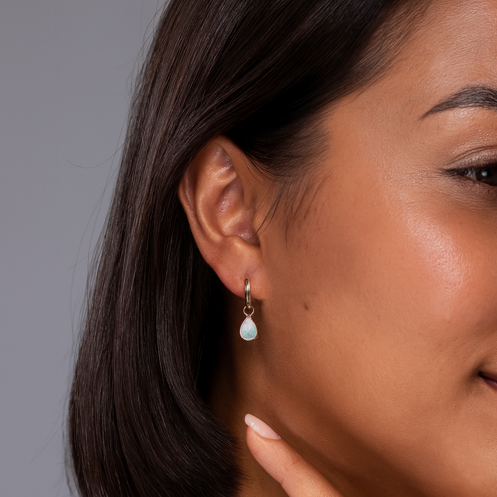These pear opal drop earrings are your go-to for effortless shine. Set in gleaming solid gold with secure drop setting, they’re as perfect for daily wear as they are for special occasions.