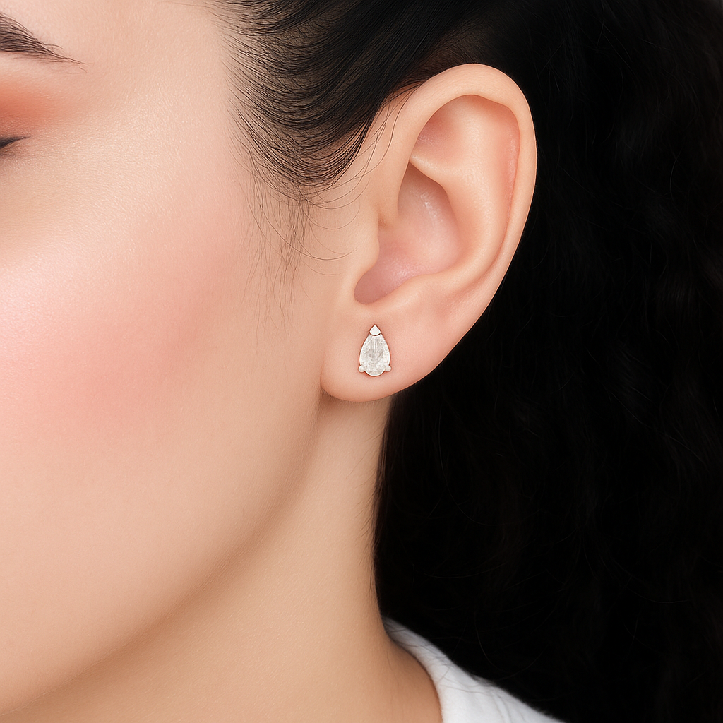 These lab-grown pear cut stud earrings are your go-to for effortless shine. Set in gleaming solid gold (custom) with secure stud setting, they’re as perfect for daily wear as they are for special occasions.