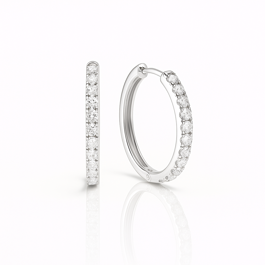 These lab-grown round cut hoop earrings are your go-to for effortless shine. Set in gleaming solid gold (custom) with secure hoop setting, they’re as perfect for daily wear as they are for special occasions.