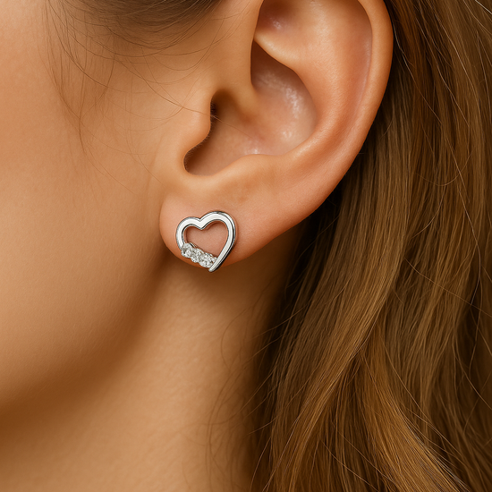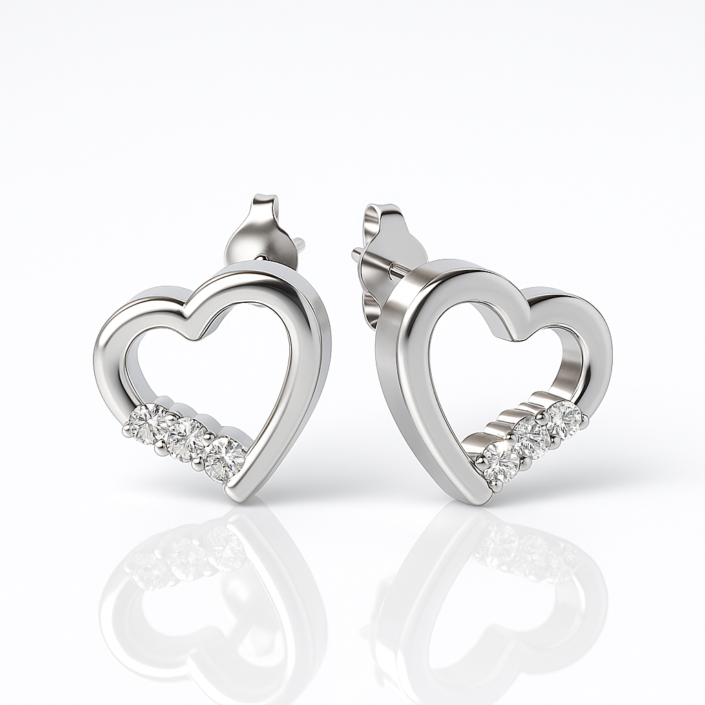 4 Prong Round White Gold Lab Grown Heart Shaped Designer Diamond Earrings