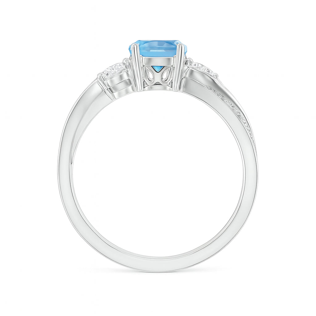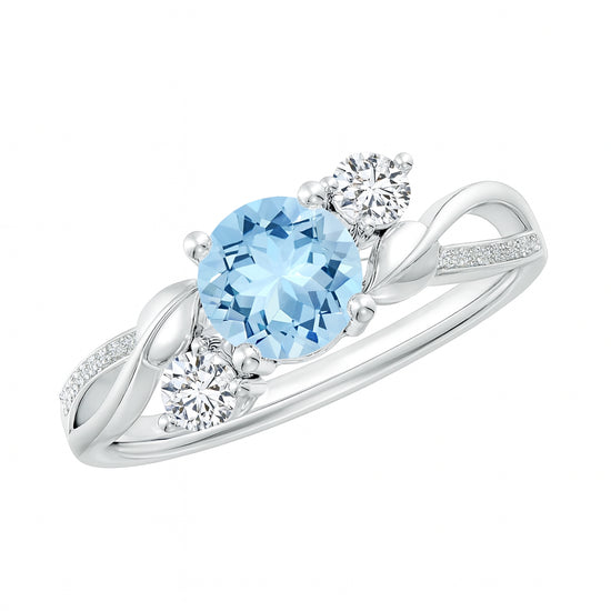 Round Aquamarine and Diamond Twisted Vine Design Engagement Ring