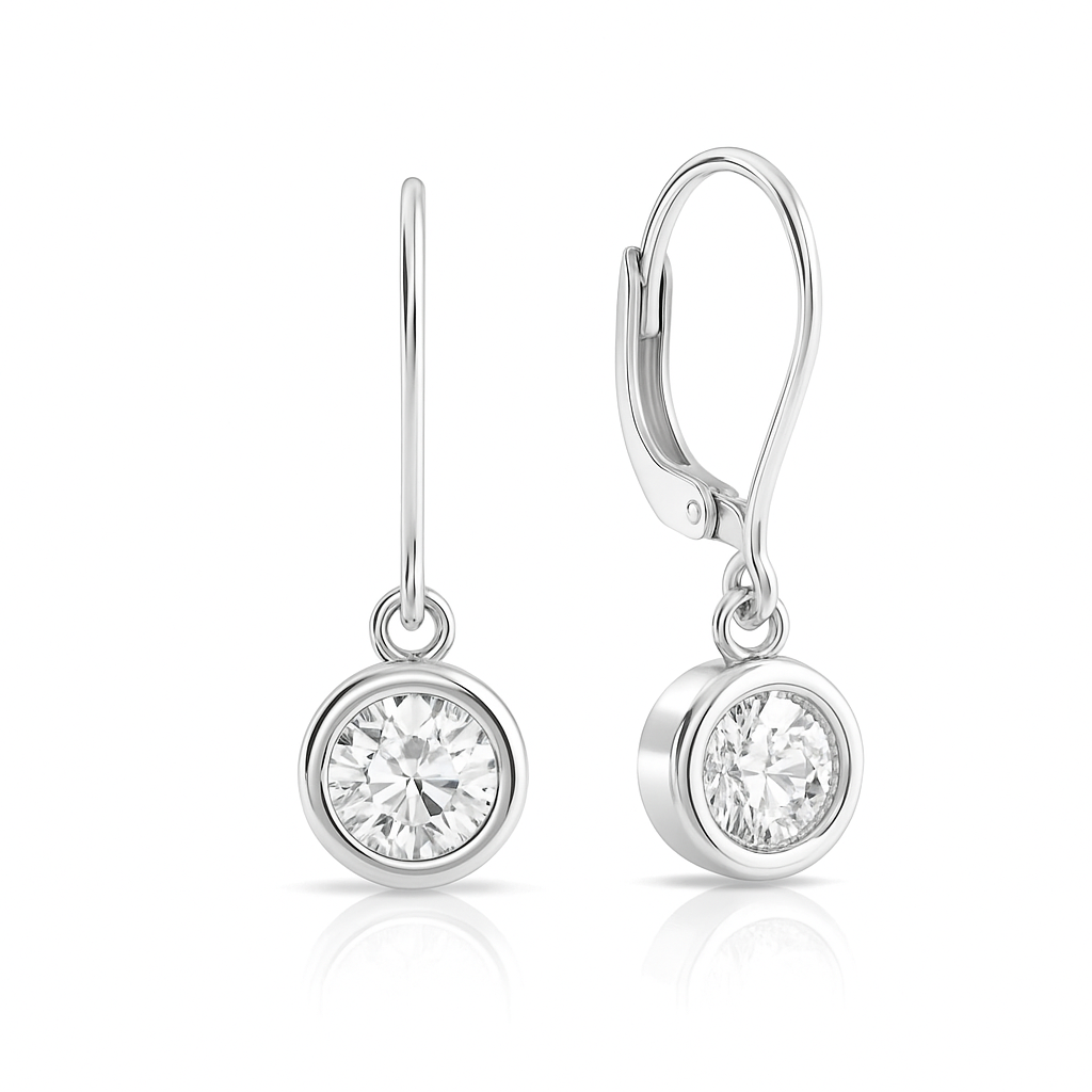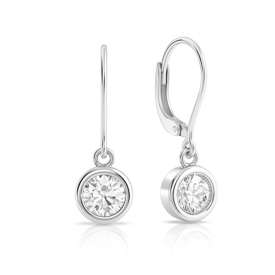 Bezel Setting Round Lab Grown Hoop Stud Drop Diamond Earrings