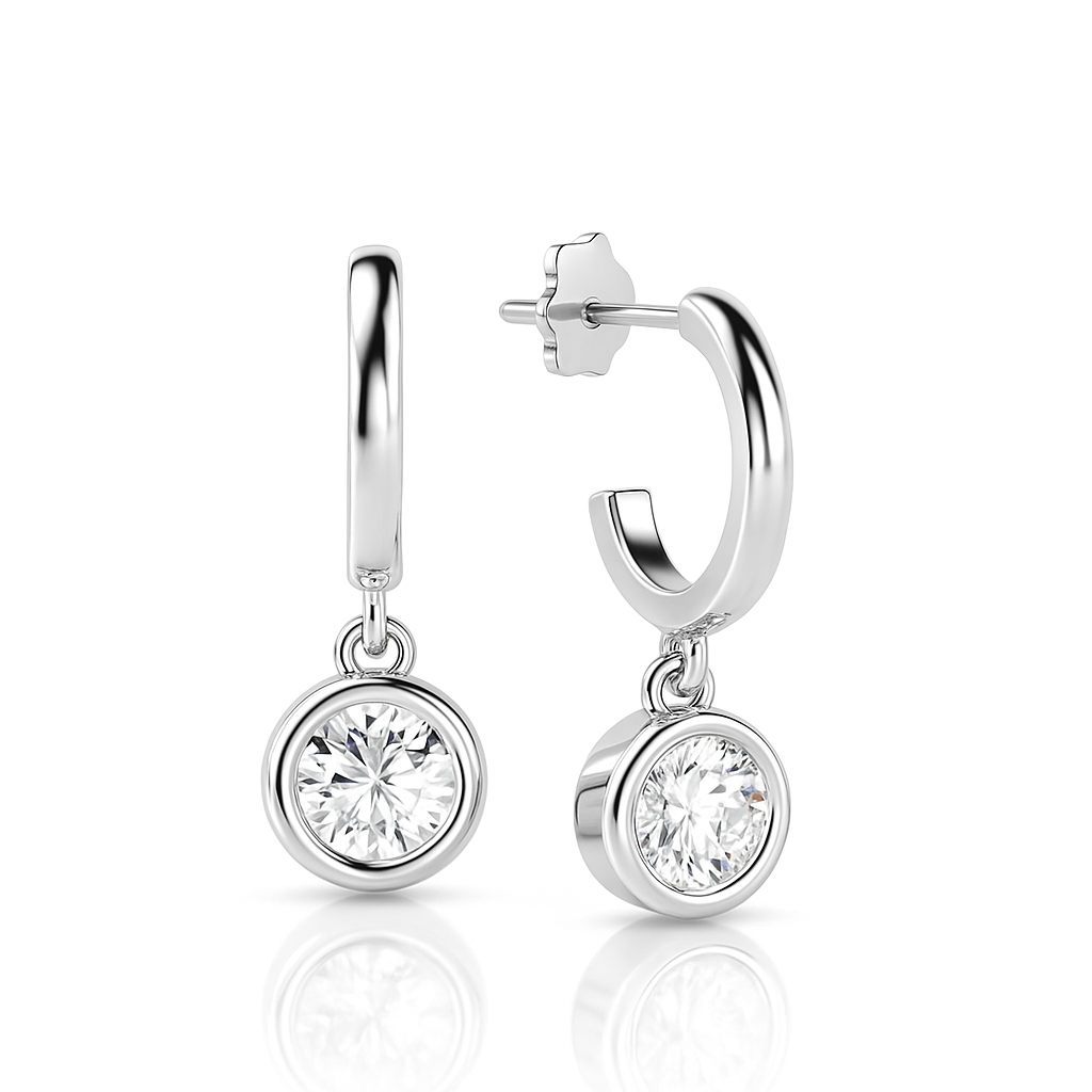Bezel Setting Round White Gold Lab Grown Huggies Drop Diamond Earrings