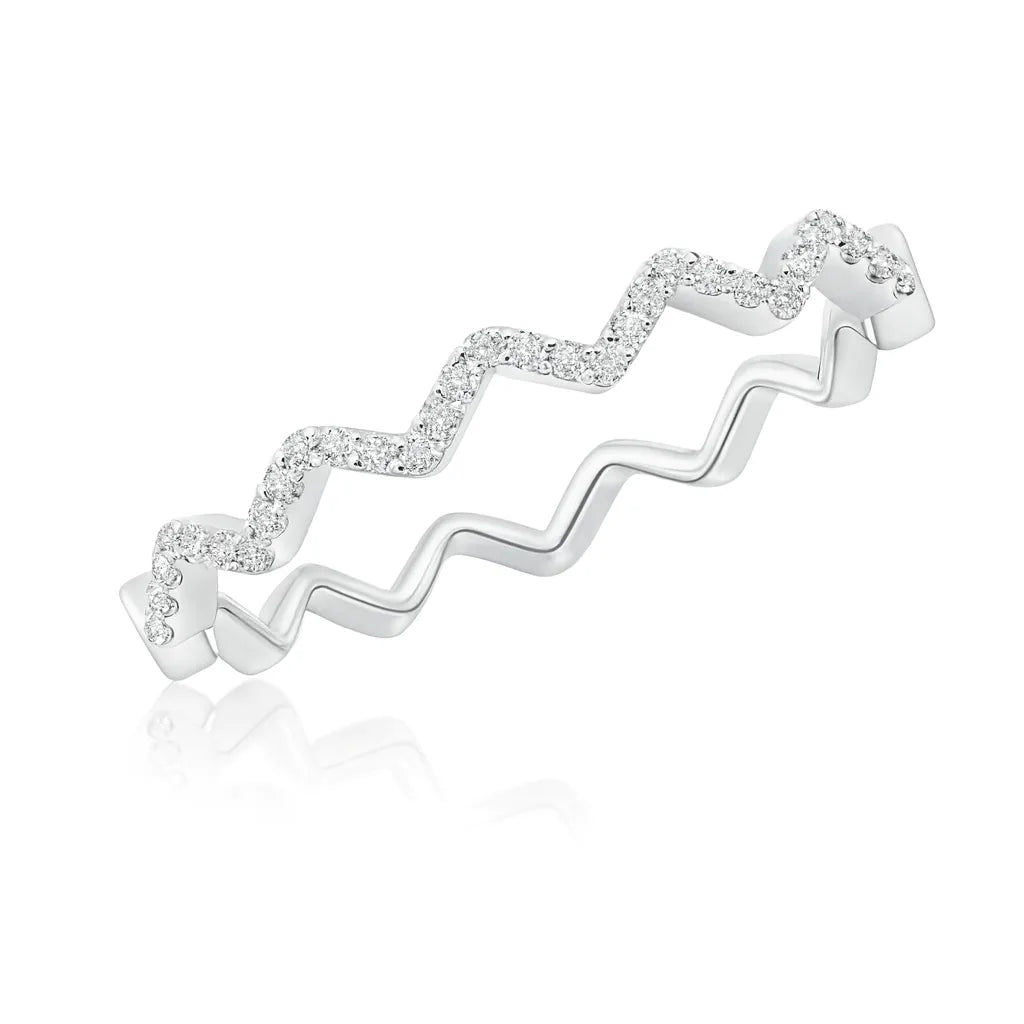 Classic Round Diamond Zig Zag Ring Solid Gold Metal