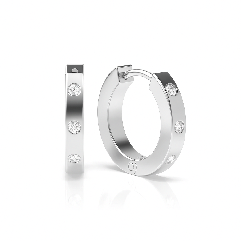 Flush Setting Round White Gold Lab Grown Petit Hoop Pair Diamond Earrings