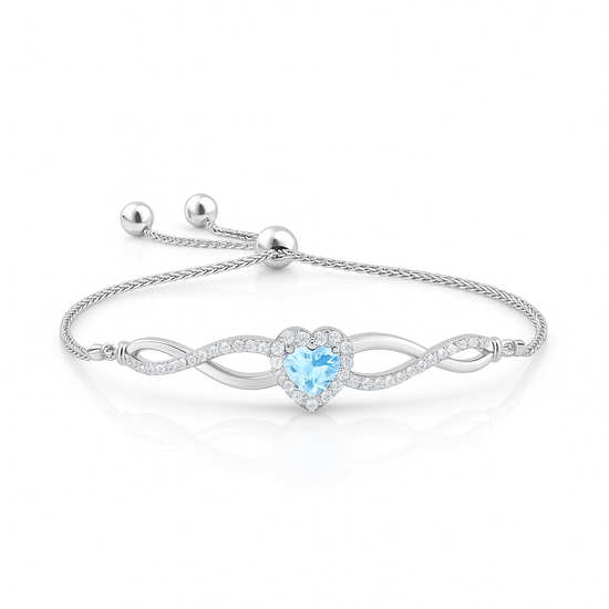 Heart-Shape Aquamarine Infinity Bolo Diamond Gold Bracelet