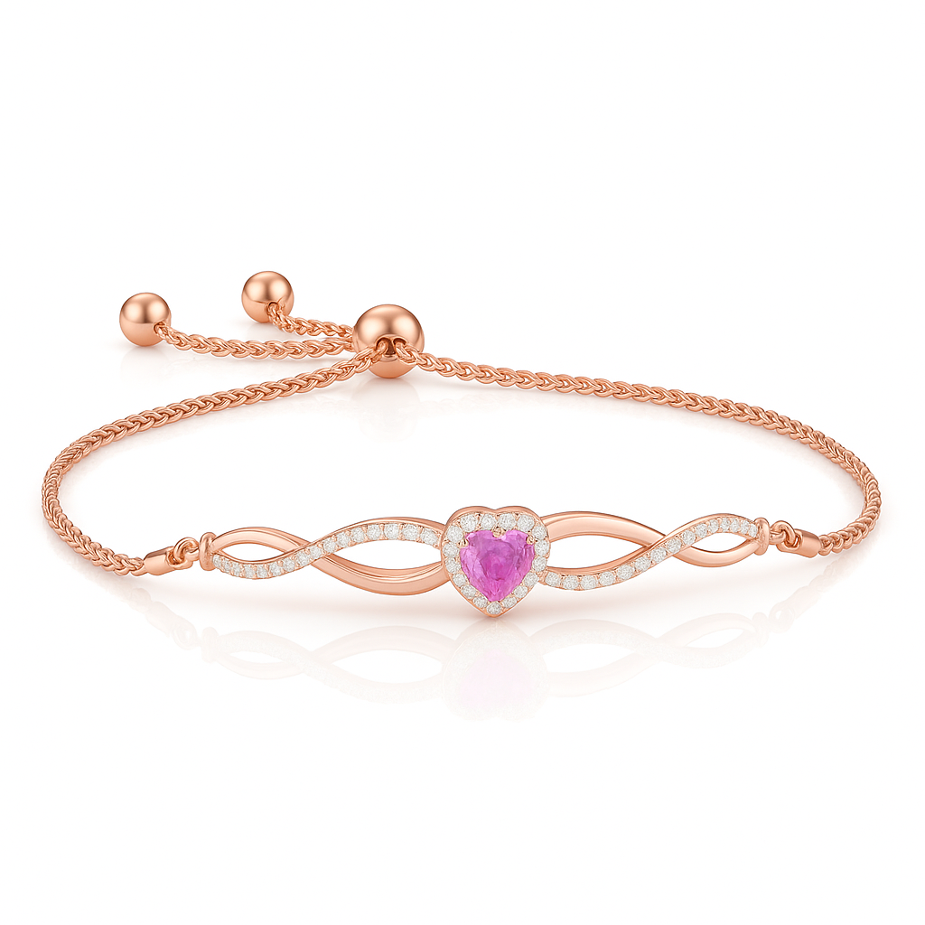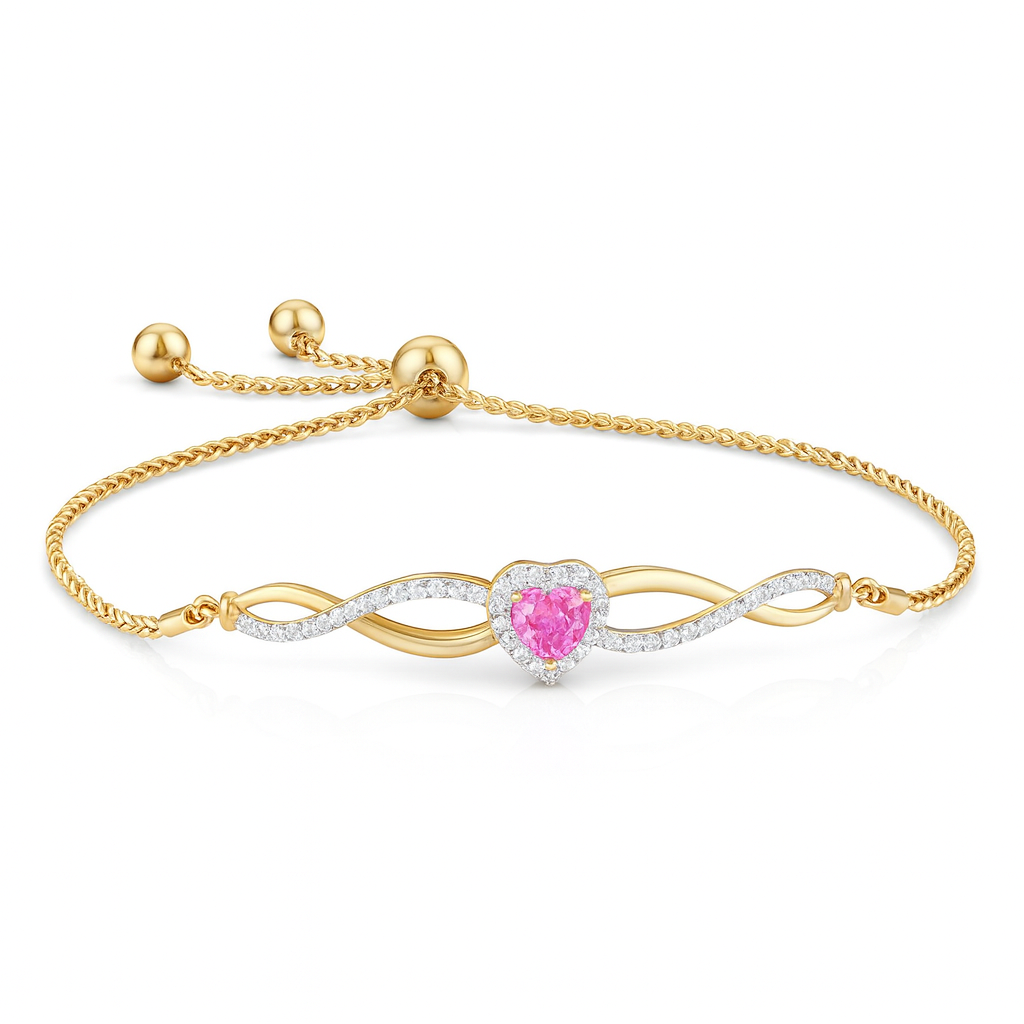 Heart-Shape Pink Sapphire Infinity Bolo Diamond Gold Bracelet