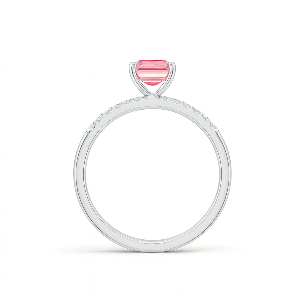 Lab Grown Emerald Cut Fancy Intense Pink Diamond Engagement Ring