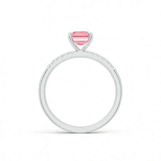 Celebrate your love with a handcrafted emerald-cut fancy pink stone, full of sparkle and meaning. Set in rich 18ct white gold (Custom), this timeless piece blends modern elegance with classic romance.
