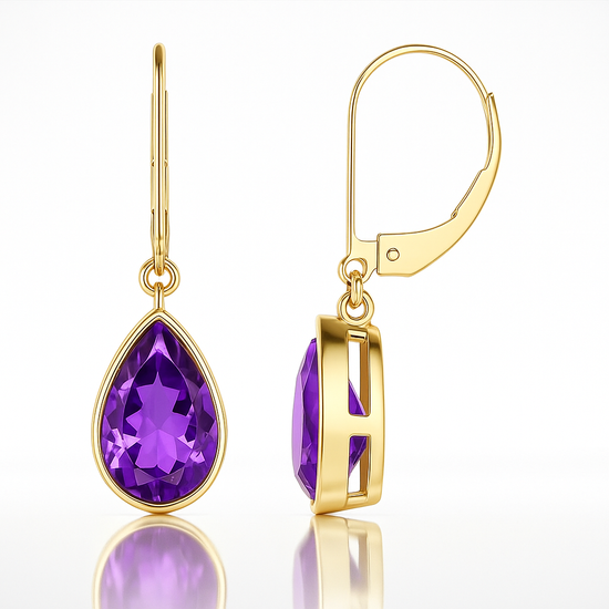 Pear Amethyst Lever back Drop / Dangle Earrings with Diamond