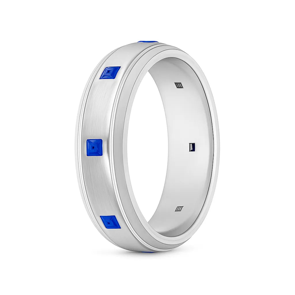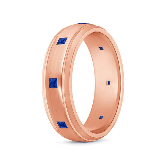 Square Sapphire Low Dome Comfort Fit Wedding Ring for Him Solid Gold Metal